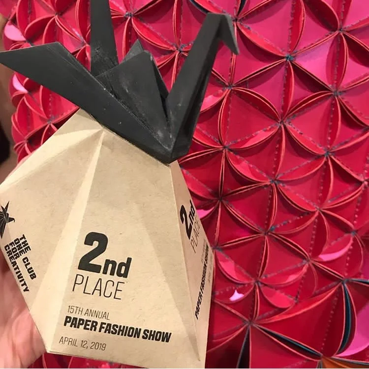 I had the opportunity to create a new design for the Paper Fashion Show Awards. Working with the producers of the show, I created a concept based on their logo. As these trophies were limited production, simple methods were chosen. The top of the trophies were SLA printed, and the bottom was a geometric dress shape folded from a paper pattern designed to be printed on an inkjet printer and cut by hand.